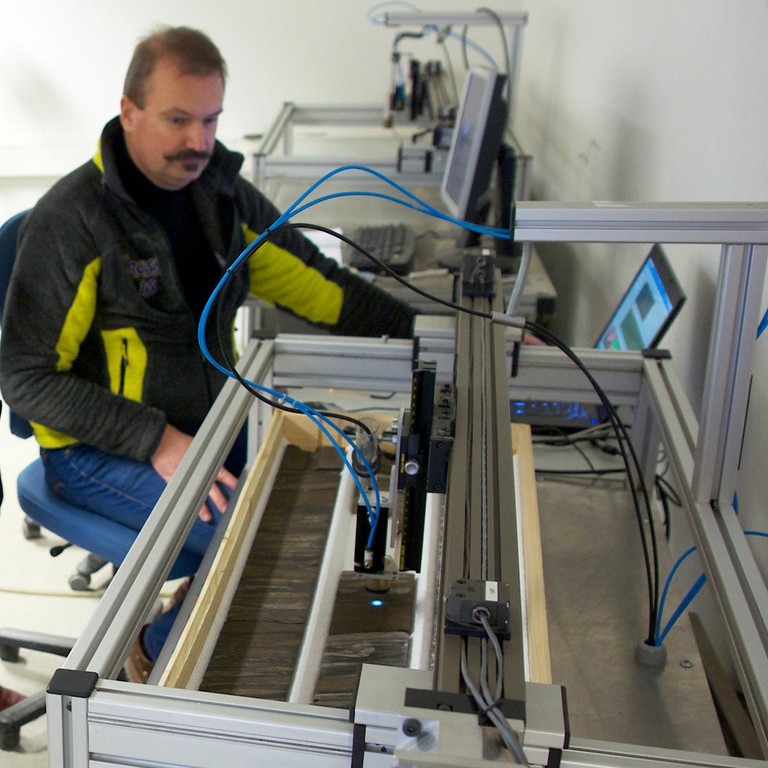 Senior Geologist Jan Kihle operating the IFE Hydrocarbon Core Scanner.