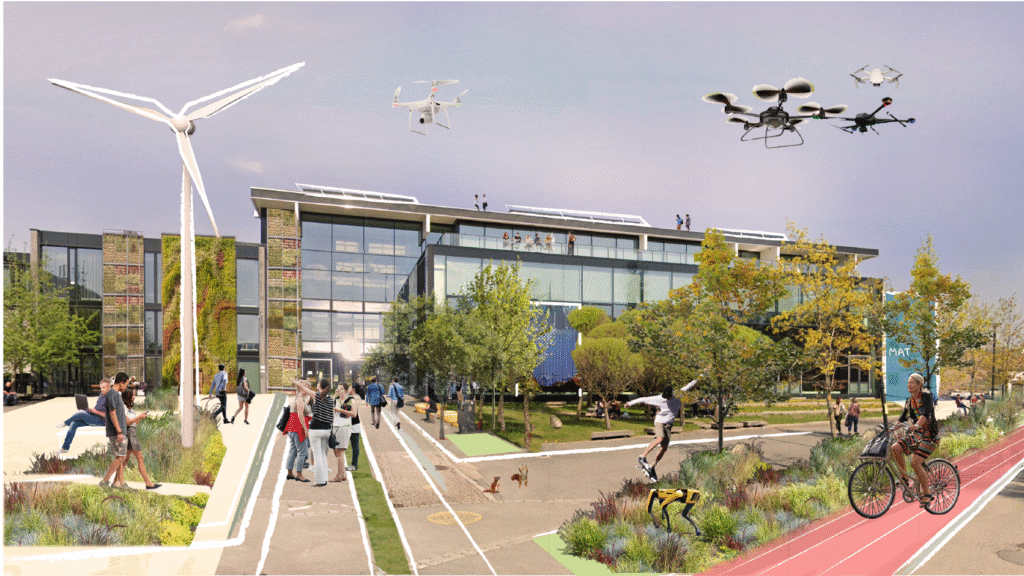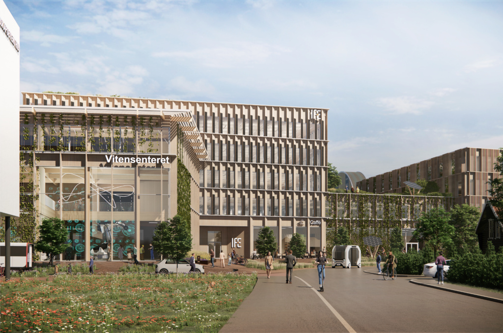Her bygger vi en åpen, grønn og nyskapende forsknings- og teknologipark – et sted der folk møtes, ideer deles og nye løsninger blir til. Målet er å gjøre Kjeller til et av Norges mest attraktive steder for forskning, teknologi og næringsliv.